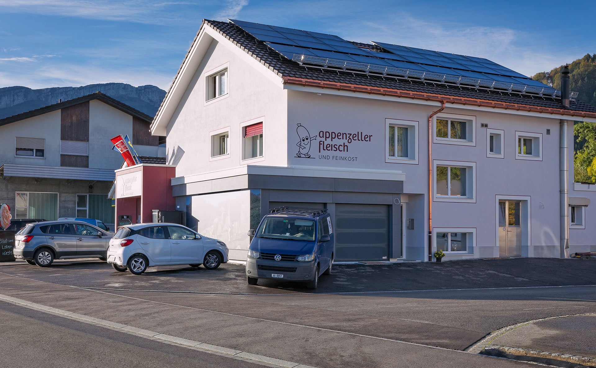Das Mutterhaus der Appenzeller Fleisch und Feinkost wird nach gut 40 Jahren erneuert, der Laden neu eingerichtet, auch aussen isoliert und neu gestaltet. ID·MANSER erstellt drei Farbentwürfe, einer davon wir als Muster erstellt und dann ausgeführt.