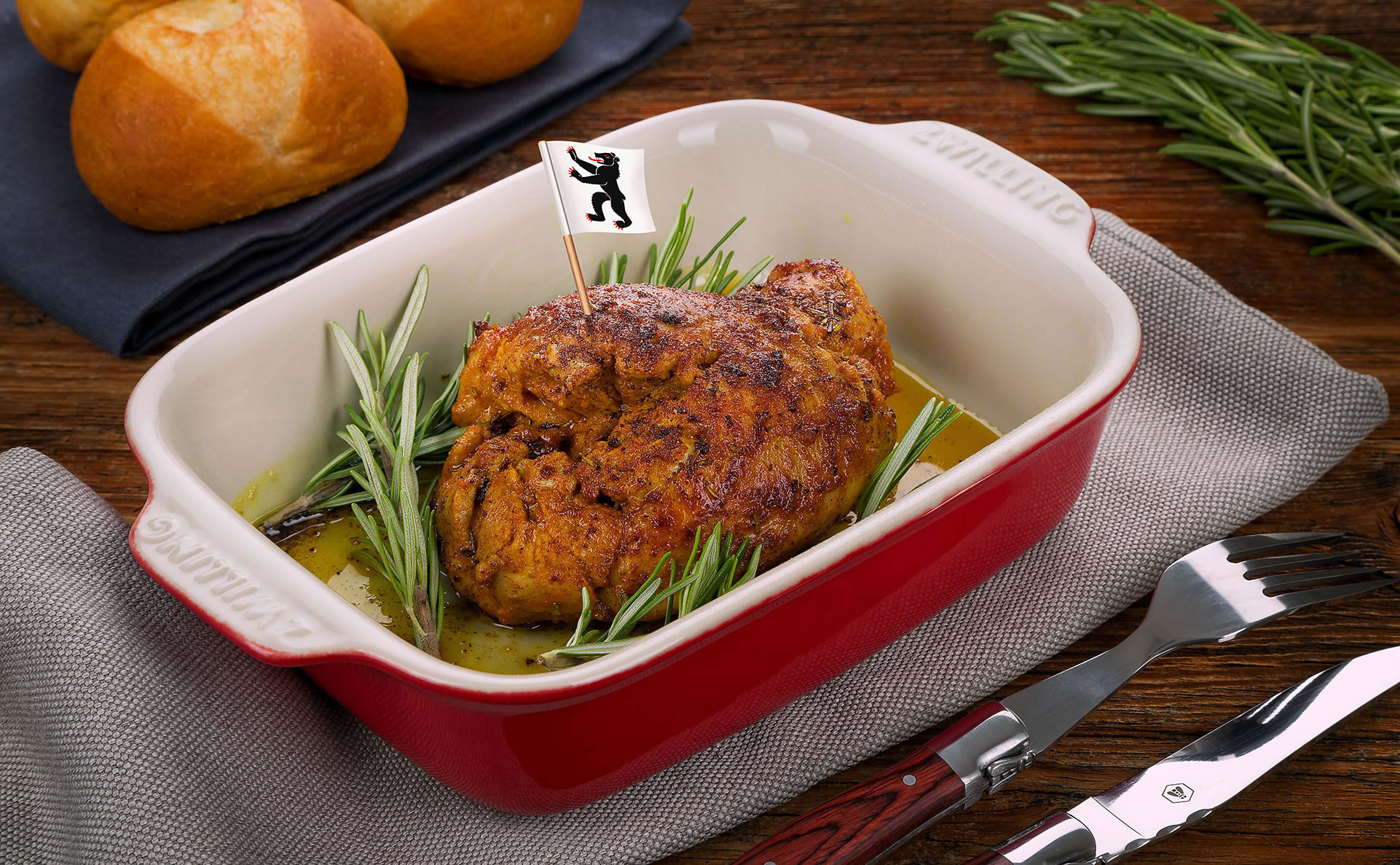 Der genussvolle Kaninchenschlegel liefert ein sehr feines und bekömmliches Festmahl. Der Appenzeller Braten ist ofenfertig zu haben, einfach zu machen, und schmeckt grossartig: ideal für den Muttertag.