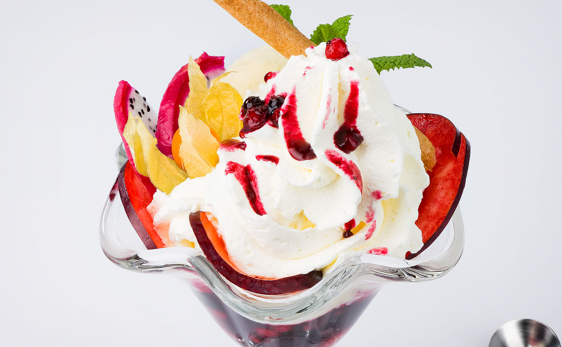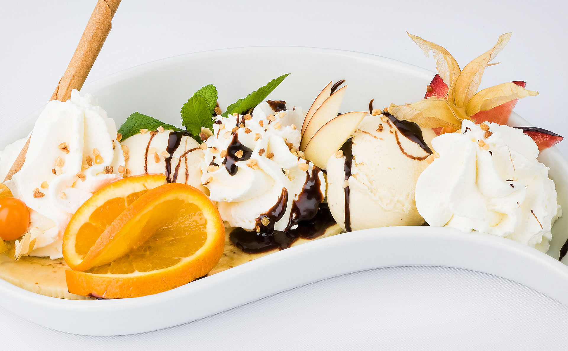 Joghurt-Krischen-Frappee, Bananensplit, Hot Berry Coupe …