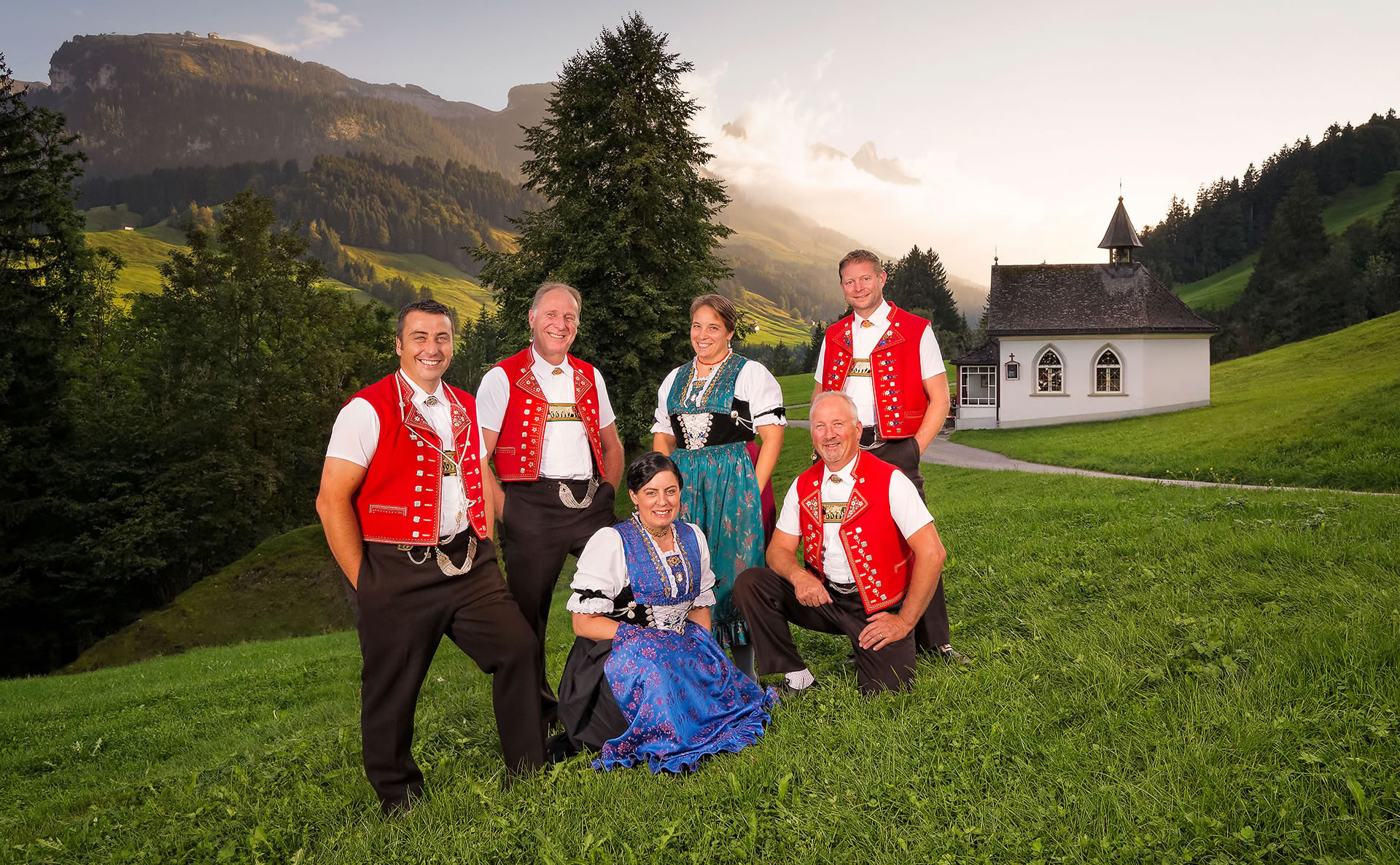 Die Jodlergruppe Hirschberg möchte aktuelle Bilder ihrer Formation. Es gibt einen Abend, der allen geht. ID·MANSER sucht einen Ort und erstellt Porträts und Gruppenbilder. Und das alles bei feinen Gesängen …