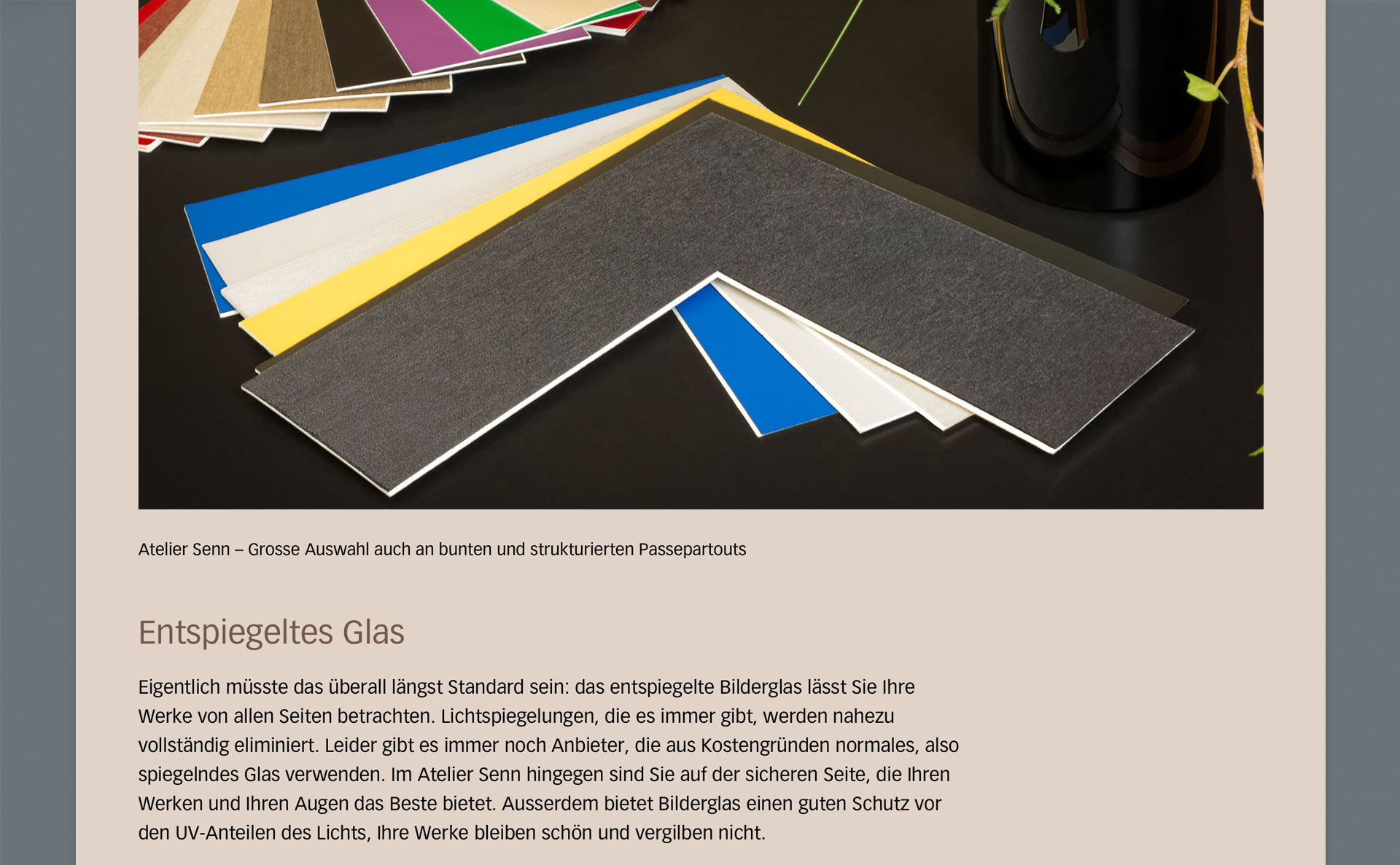 Atelier Senn – für Kunst, Bild und Rahmen hat eine Menge zu bieten. Das soll gezeigt werden: Beratung, Kreativität und Einrahmungen genauso wie ein umfassendes Angebot an verfügbarer Kunst. ID·MANSER schuf den neuen Web-Auftritt, zum Corporate Design passend.