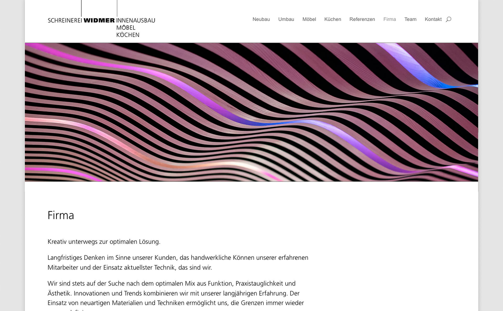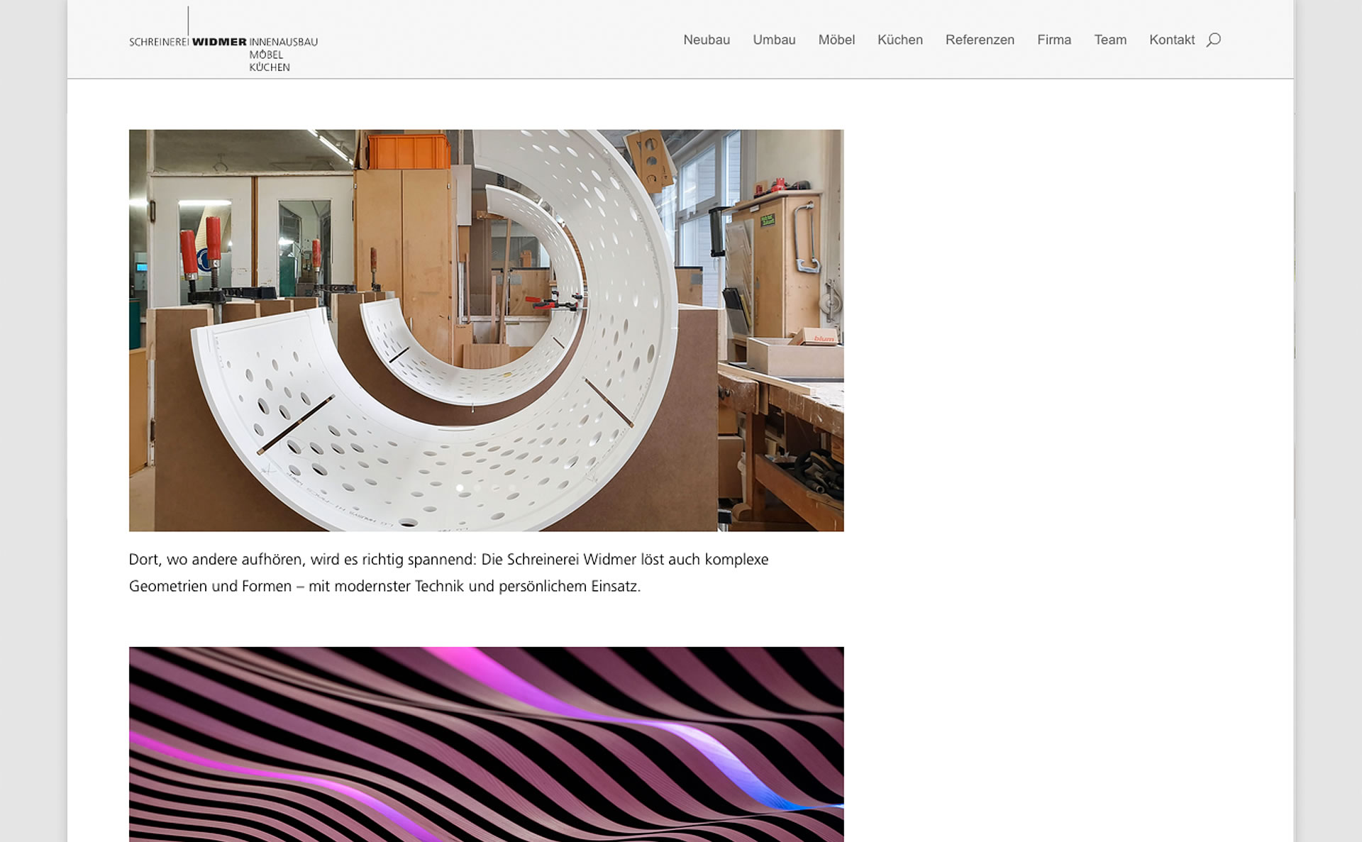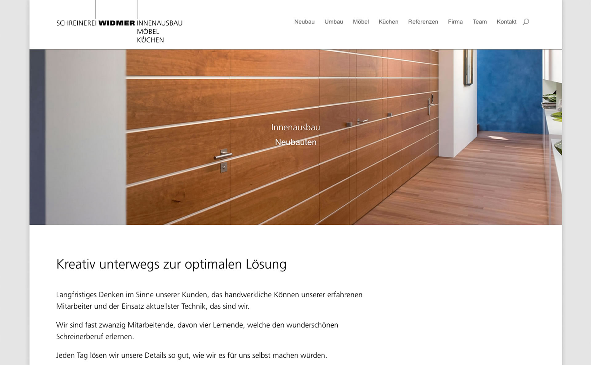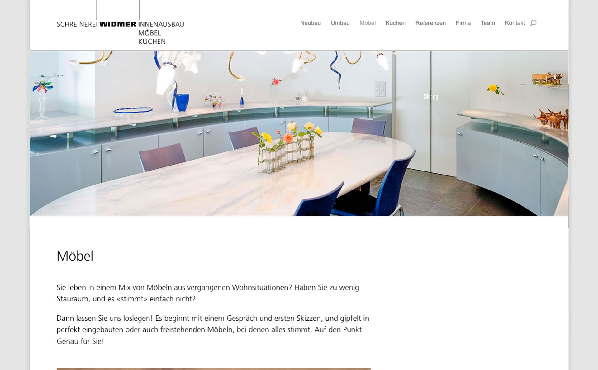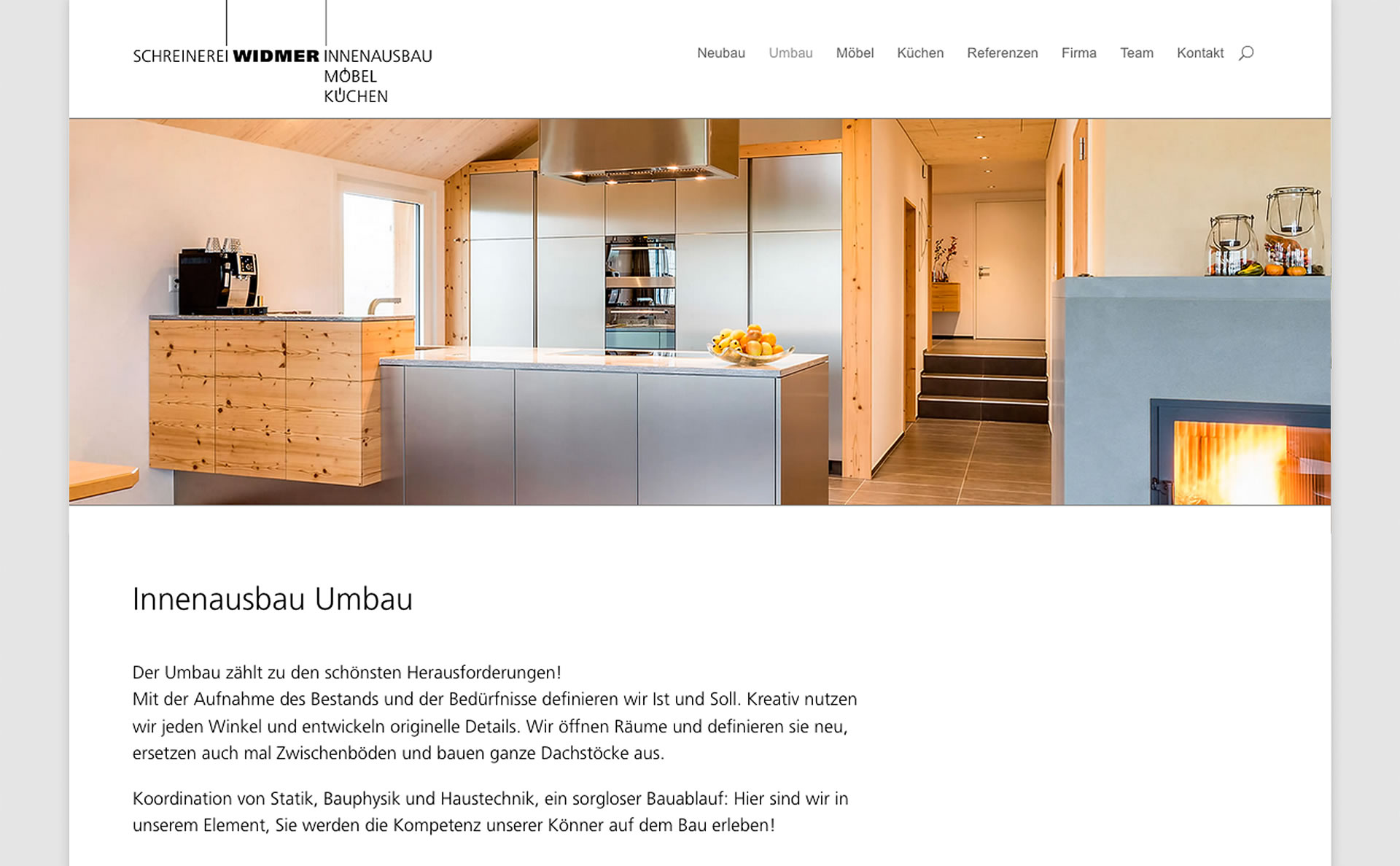 Die innovative Schreinerei Widmer möchte Neues zeigen, mehr zeigen, besser zeigen, was ihr vielseitiges Angebot und ihre Profession ausmacht, und welche Vorteile Kunden hier alles haben. Der Webauftritt wird neu aufgesetzt, Bildmaterial zusammengetragen, Texte verfasst …